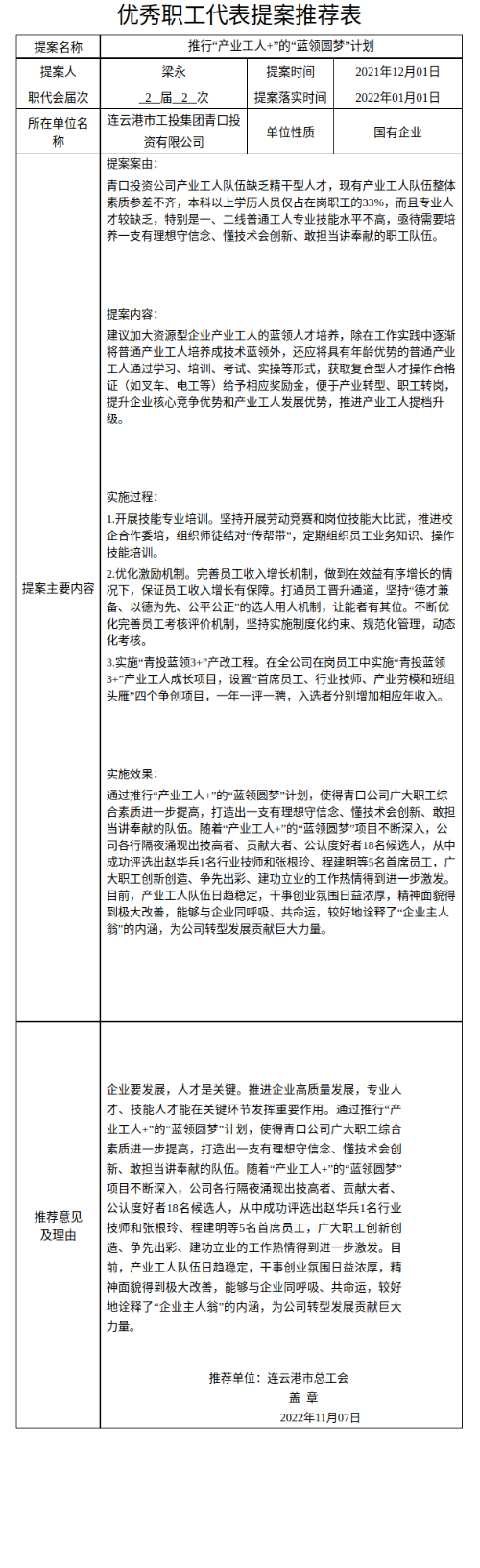 提案人: 梁永 提案类型: 发展改革