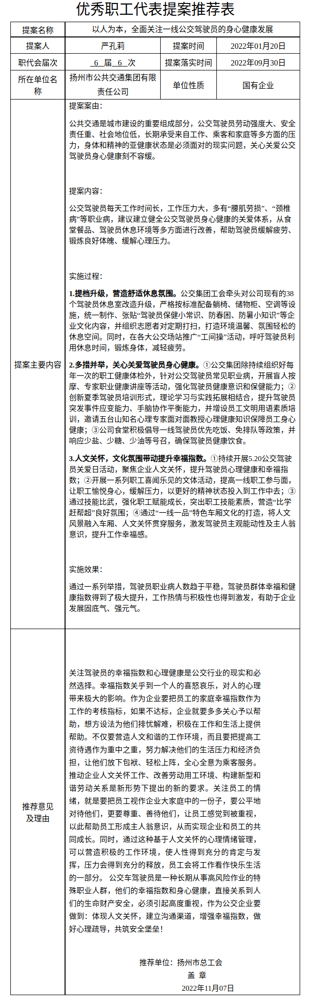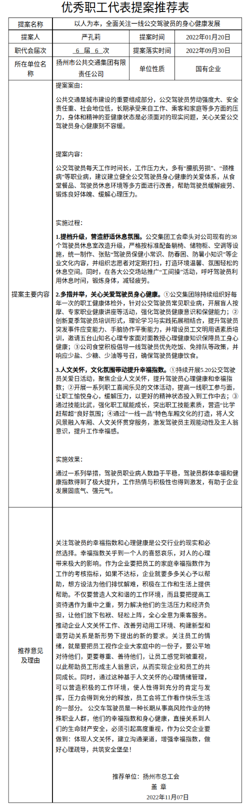 2022年度全省优秀职工代表提案