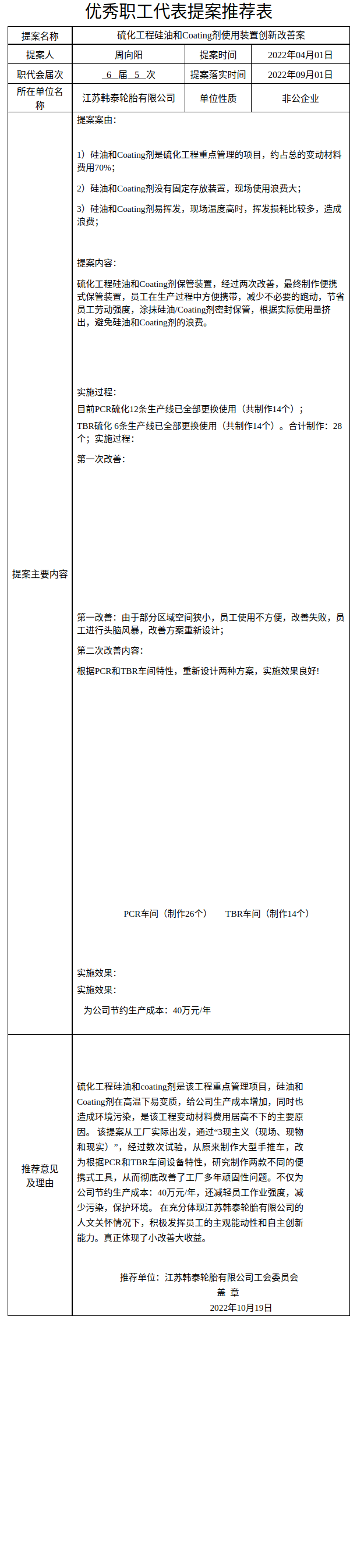 硫化工程硅油和Coating剂使用装置创新改善案