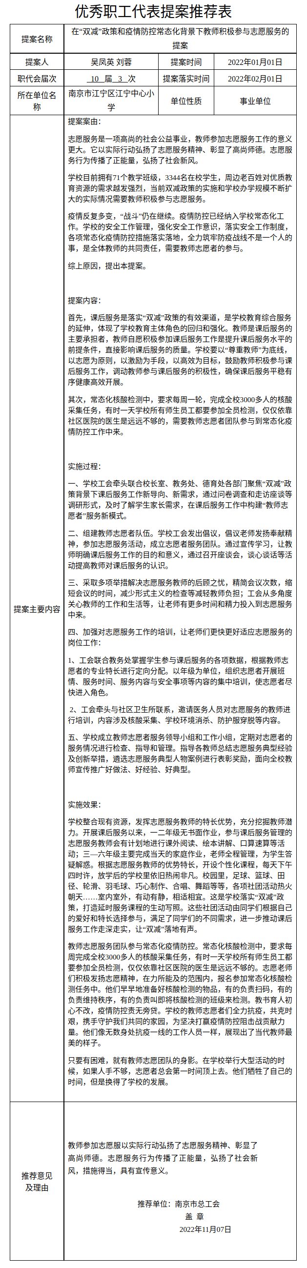 在“双减”政策和疫情防控常态化背景下教师积极参与志愿服务的提案